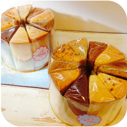 ・お楽しみセット ・ホールシフォン (7号、6号) プレーン、紅茶、チーズ、チョコレート、コーヒー、塩キャラメル、チョコバナナ |